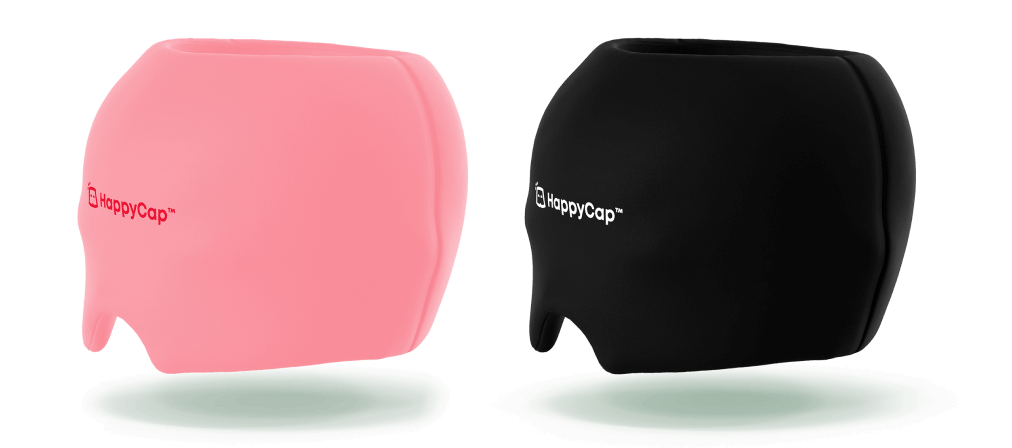 It takes only a few seconds to slide HappyCap on and off. To put it on, simply slide it over your head and enjoy the next few minutes as your discomfort begins to melt away.